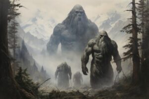 Uit een stevig huisje van boomstammen en rotsblokken vlak naast de weg kwamen onver­wacht drie enorme kerels tevoorschijn, alle drie haast langer dan drie meter, reuzen dus. De oudste was een zompig vette man met veel puisten.